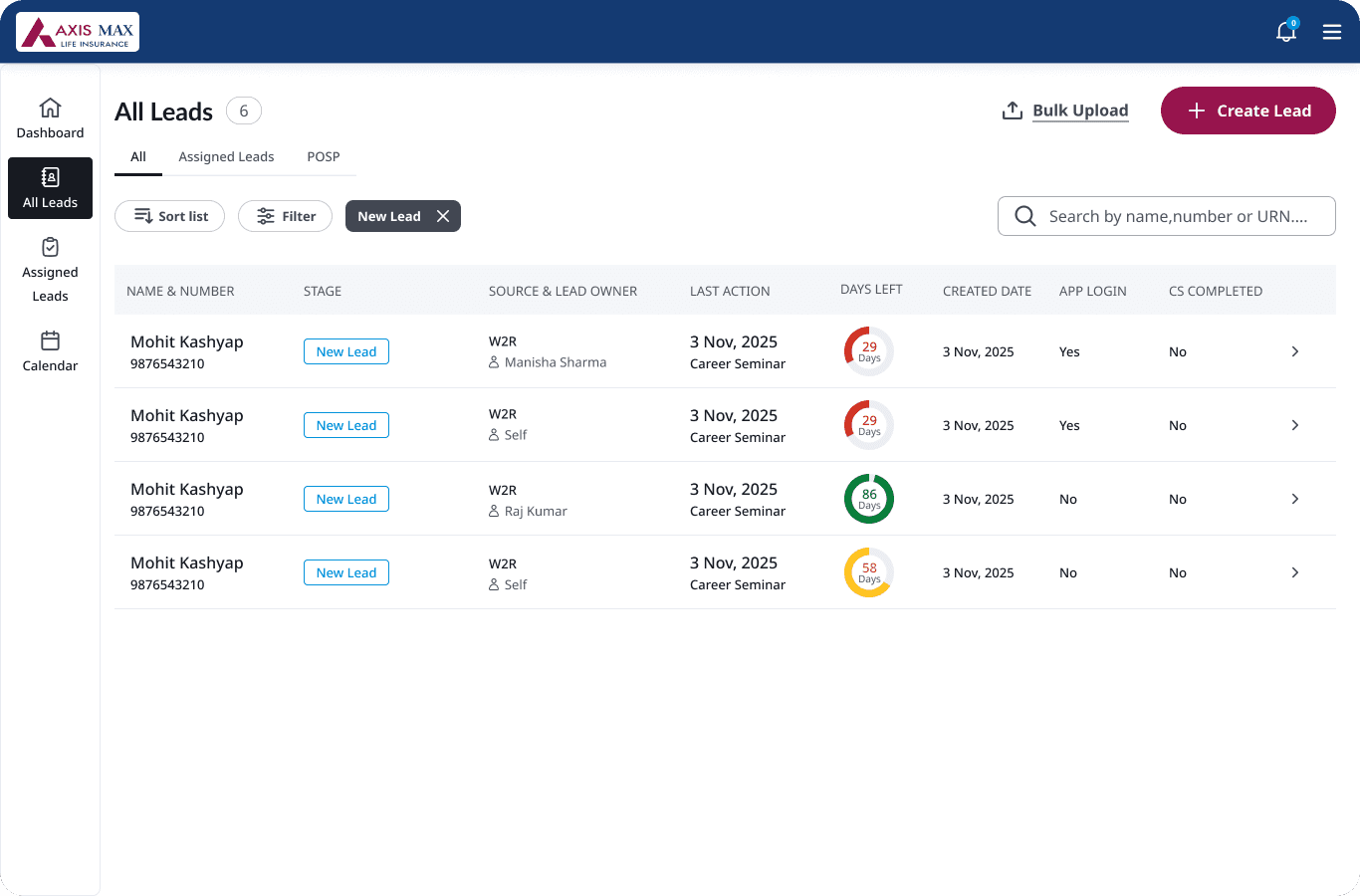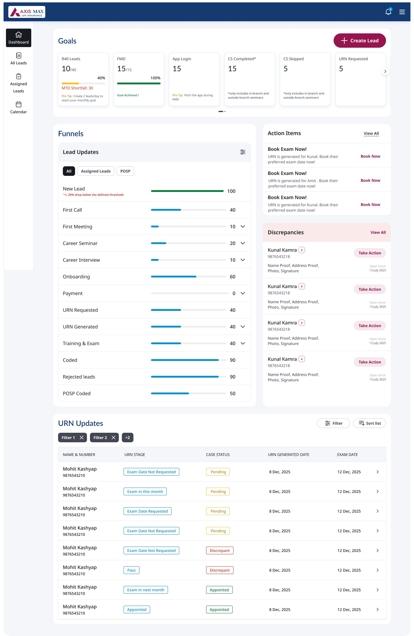 With a 1–2% lead conversion rate and a 3–4 month cycle from first contact to generating a URN (Unique Registration Number), the platform was actively working against Axis Max Life's growth targets. Every month of delay meant advisors losing interest and dropping off entirely.